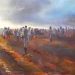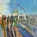 Een groep mensen op het strand. De personen zijn nog te onderscheiden en zijn samen, met elkaar en gaan ook op in hun omgeving